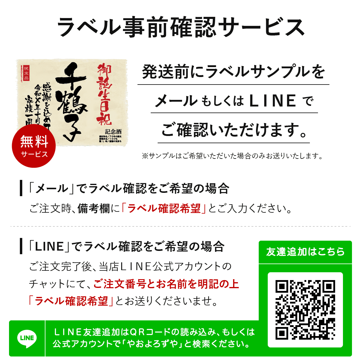こちらの名入れ酒は当店営業日15時までのご注文で即日発送が可能です。お急ぎのお客様は「配送日付:指定なし」を選択の上、備考欄に『即日発送希望』とご入力くださいませ。※15時以降のご注文、及び、当店休業日のご注文は最短で翌営業日の発送となりますのでご注意ください。