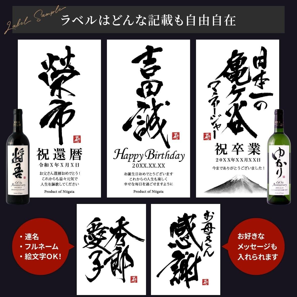 世界にひとつのオリジナルワインラベルをお作りいたします。ラベルは文字数制限なし、家紋やロゴ・イラスト等も可能です。お客さまのご希望に沿ったオーダメイドラベルをお作りいたします。