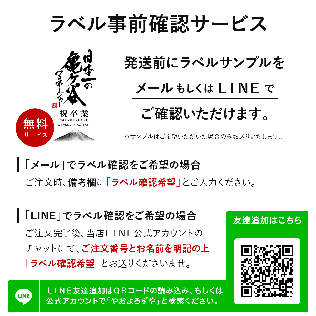 こちらの名入れワインは当店営業日15時までのご注文で即日発送が可能です。お急ぎのお客様は「配送日付:指定なし」を選択の上、備考欄に『即日発送希望』とご入力くださいませ。※15時以降のご注文、及び、当店休業日のご注文は最短で翌営業日の発送となりますのでご注意ください。